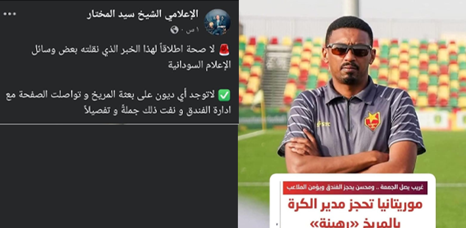 وأكد الإعلامي الموريتاني على صفحته بفيسبوك، أنه تواصل مع إدارة الفندق، التي نفت ذلك جملةً وتفصيلًا، وأكدت إدارة الفندق أنه لا توجد أي ديون على فريق المريخ.