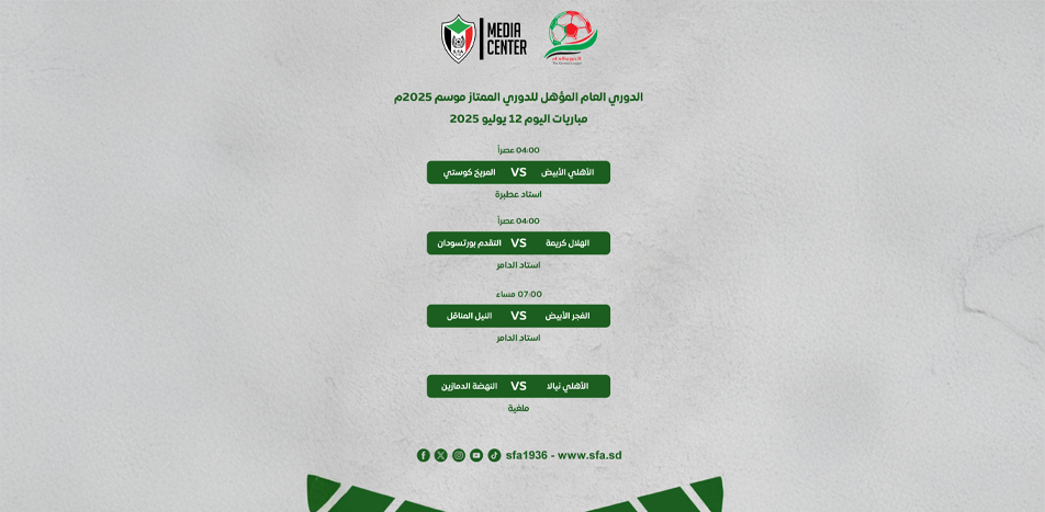 ومن المنتظر أن تلعب مباراتا المريخ كوستي والأهلي الأبيض والتقدم بورتسودان والهلال كريمة عصر بعد غدٍ الإثنين.