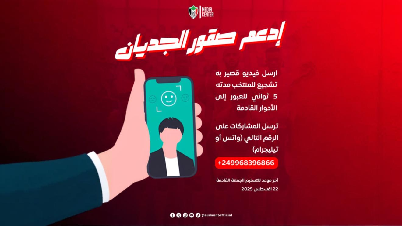 ناشد إعلام الاتحاد السوداني لكرة القدم جماهير الكرة السودانية بمؤازرة ودعم صقور الجديان قبل مواجهة نظيره الجزائري مساء بعد غدٍ السبت في الدور ربع النهائي لبطولة الشان 2024 باستاد أمان في زنجبار.