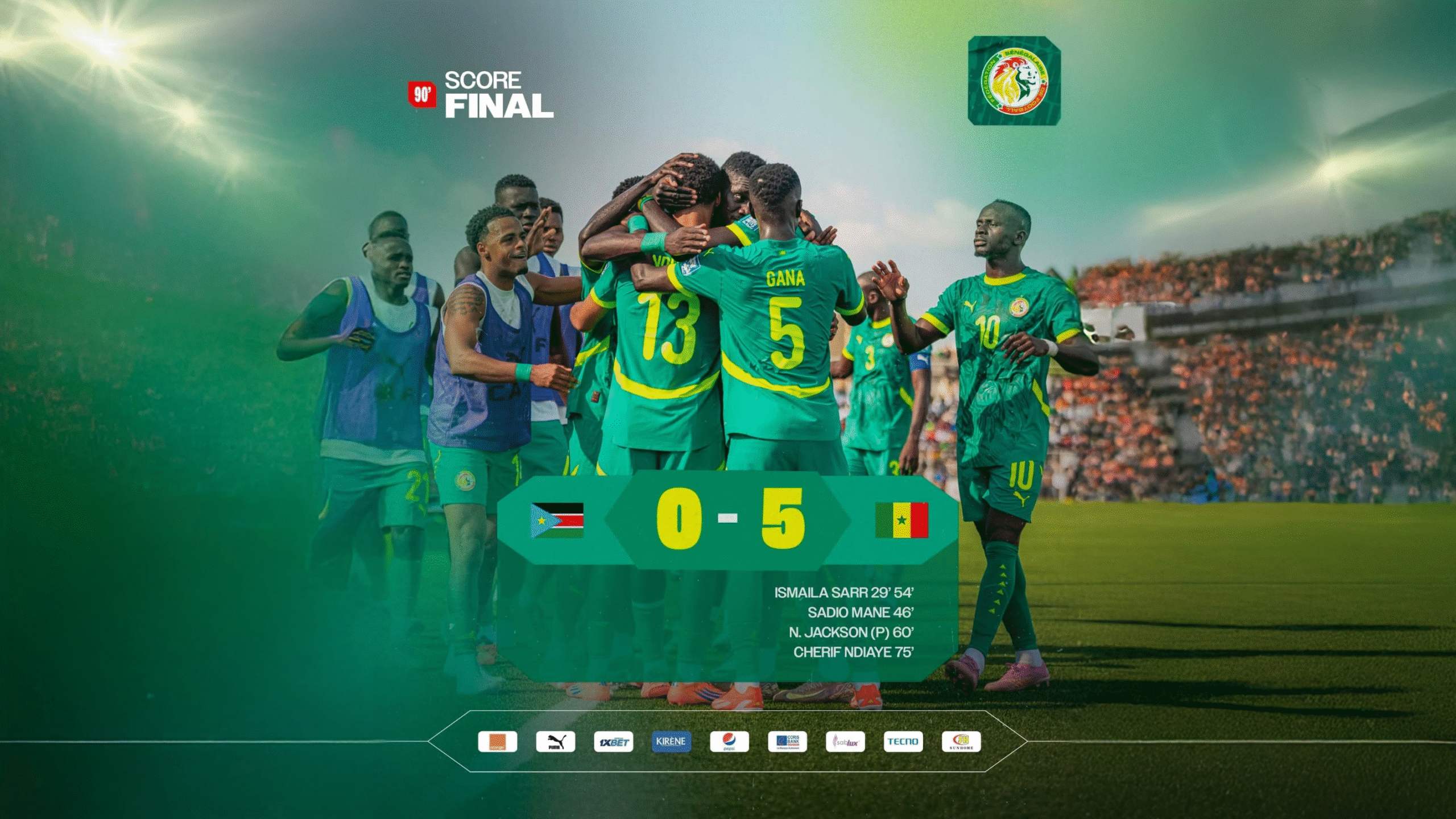 واصل منتخب السنغال تألقه في التصفيات الإفريقية المؤهلة لكأس العالم 2026، بعدما حقق فوزًا كبيرًا على جنوب السودان بنتيجة (5 – 0)، ليصل رصيده إلى 21 نقطة في صدارة المجموعة، ويقترب خطوة جديدة من التأهل المباشر إلى المونديال.