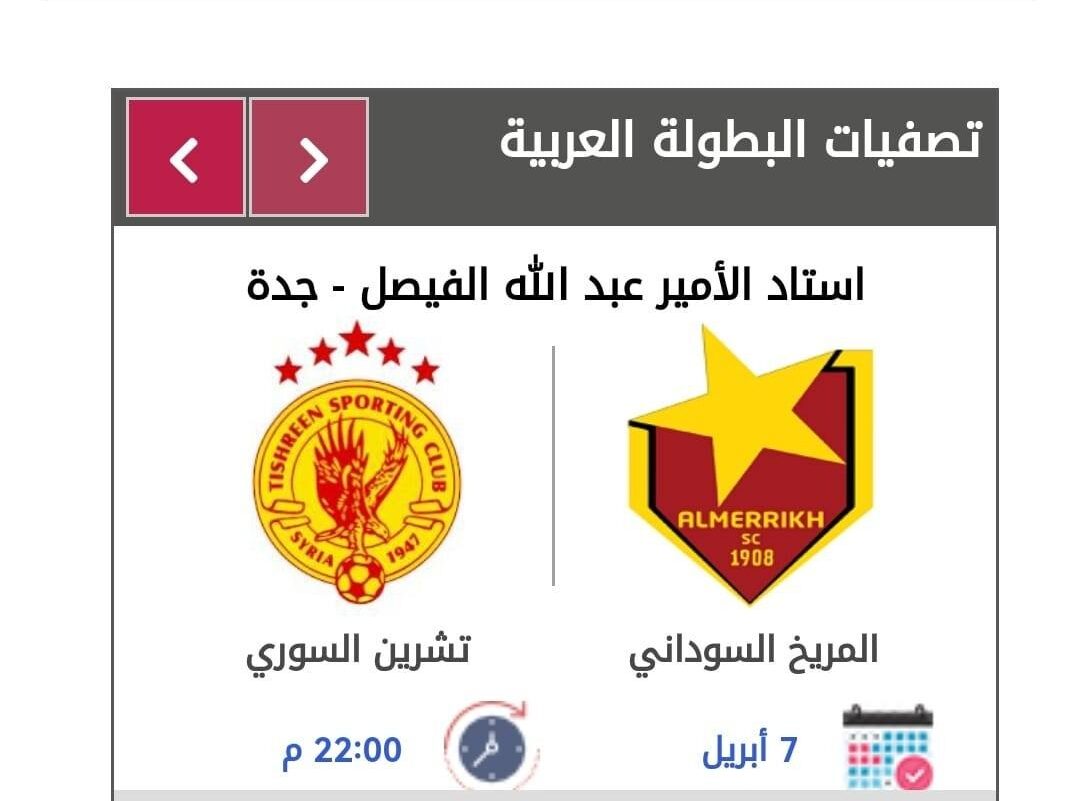 توضيح عاجل من الاتحاد العربي بشأن مباراة المريخ وتشرين